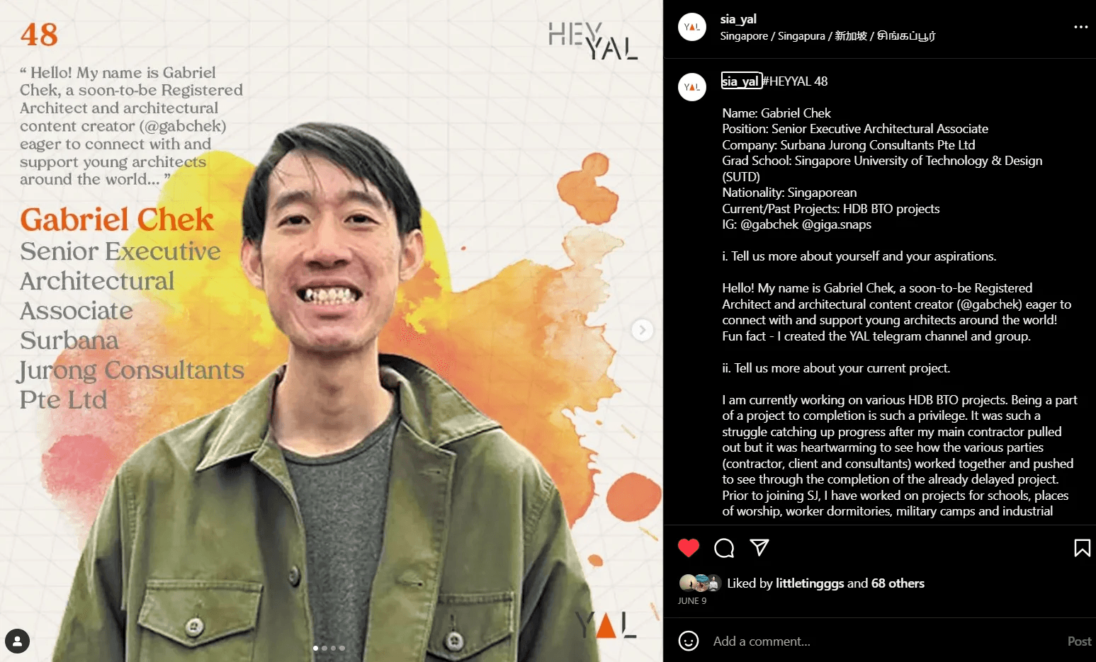 Previously, I was a Project Architect at Surbana Jurong, running public housing projects, where I am involved in coordination, authority submissions, site inspections and seeing to completion.